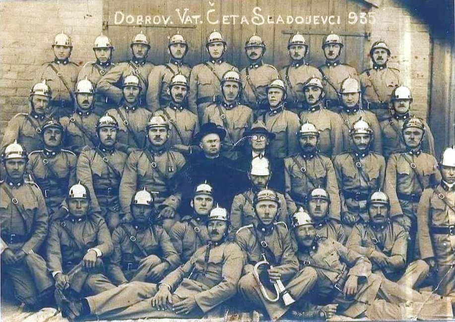 DVD Sladojevci osnovan je 20.6.1935. na inicijativu mještana Stjepana Salaja koji je izabran za 1. zapovjednika društva. Tadašnji župnik Petar Gjipalo postao je 1. predsjednik ovog DVD-a. Na osnivačkoj skupštini nazočilo je „vala cijelo selo“ i isti dan je upisano 40 aktivnih članova.