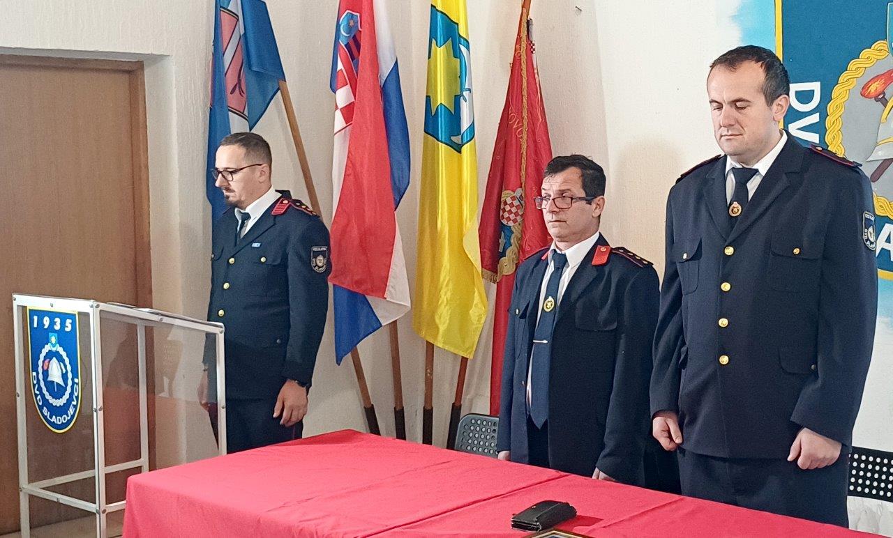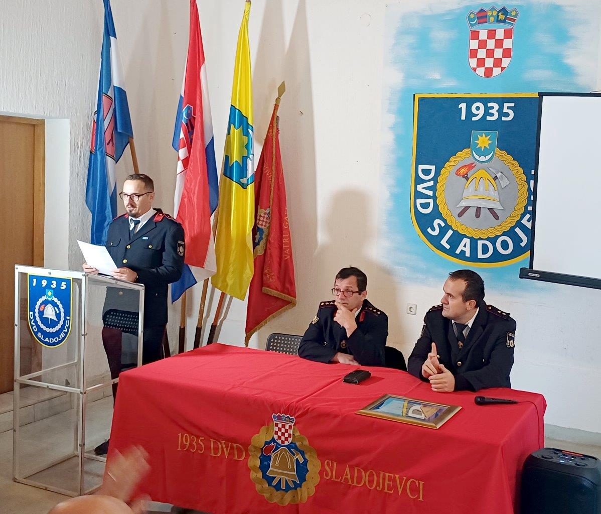 Svečanoj sjednici koja je slijedila nakon sv. Mise bili su nazočni dožupan VPŽ Marijo Klement, gradonačelnik Slatine Tomo Tomić (donedavni zamjenik zapovjednika DVD-a), v.d zapovjednika Vatrogasne zajednice (VZ) VPŽ Boris Tomšić, predsjednik VZ grada Slatine Branko Belošević i zapovjednik JVP Slatine Tomislav Uher. Svima poznati Sladojevčan, autor pjesme „Majko Voćinska“, Perica Pokupčić otpjevao je hrvatsku himnu. Skupštinu su vodili zapovjednik DVD Sladojevci Dalibor Pokupčić, član Odbora Tomislav Kizivat i predsjednik Josip Vajnhal.