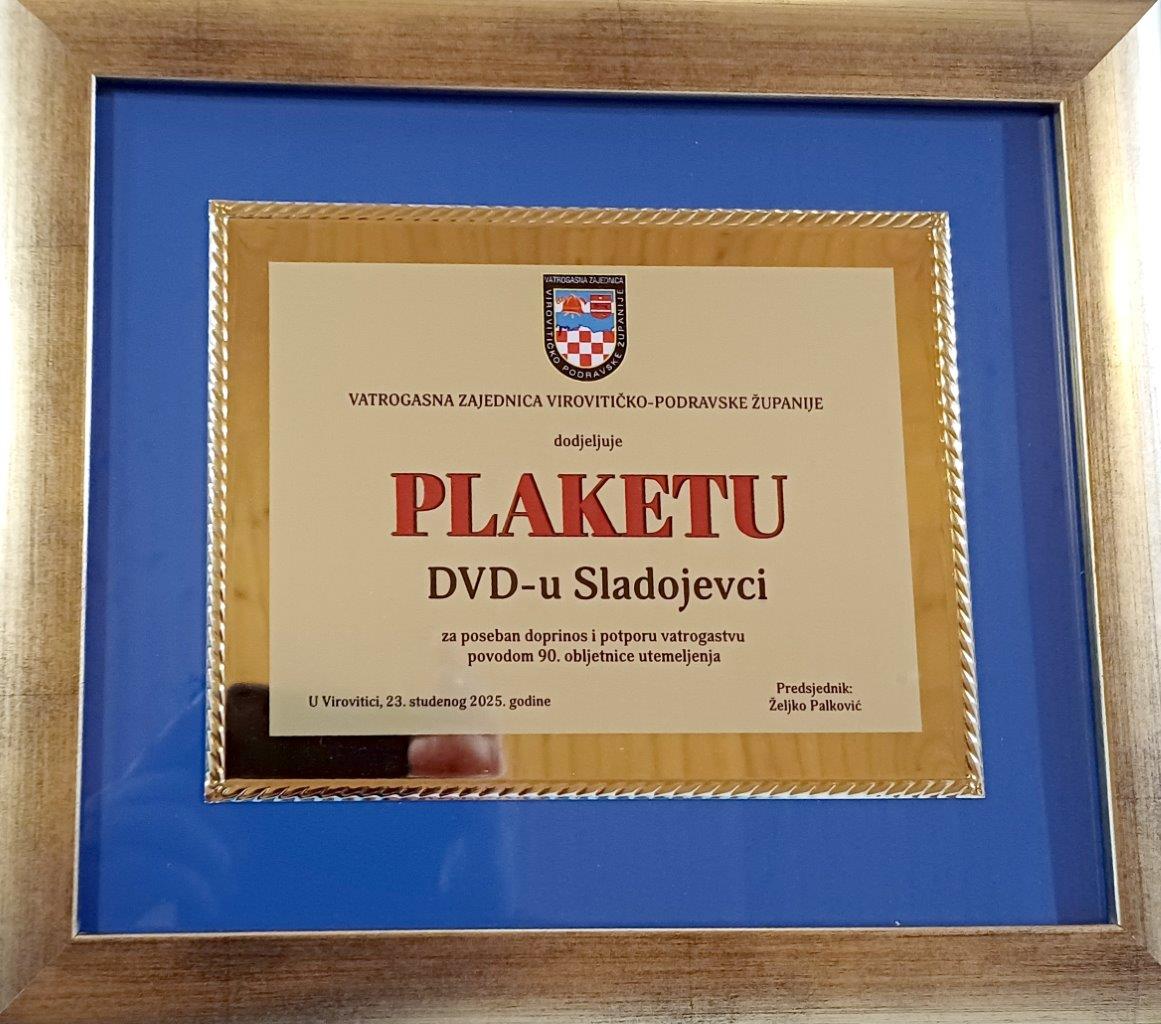 U nedjelju 23. studenog 2025. godine, u Sladojevcima svečano je obilježena 90- ta godina od osnivanja DVD Sladojevci. Nakon dočeka gostiju, svečanog mimohoda kroz selo i polaganja vijenaca održana je sv. Misa u crkvi sv. Barbare koju je misio župnik Darijo Šimić. On je zahvalio vatrogascima za njihov doprinos zajednici kroz ovih 90 godina i pomolio se za sve preminule vatrogasce ovog DVD-a. Predsjednik društva Josip Vajnhal ukratko je spomenuo koju je ulogu DVD imao i danas ima u okupljanju djece i mladeži kako bi bili korisni svojoj zajednici.