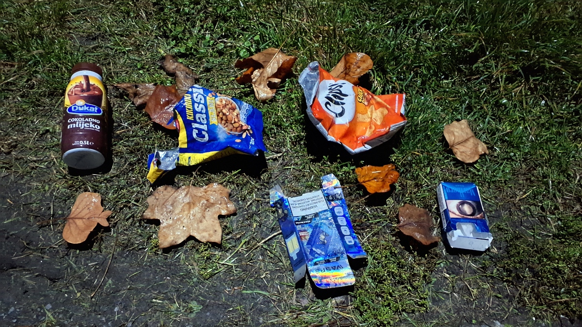 Svi znamo, da su nadzorne kamere skupe, a njihova primjena moralno upitna, kao i da su roditelji školske djece prezaposleni i prepuni svakodnevnih briga. Istovremeno su učitelji, nastavnici i profesori preopterećeni i siti svega, ponajviše, svakodnevnim ponavljanjem suhe teorije koja učenike uopće ne zanima. A vječno gladna školska djeca, nemaju dovoljno prostora u džepovima i školskom torbama za nošenje inkriminirajućih sadrža doma. Uostalom ni roditelji ne žele znati, kakve sve skupe i nezdrave gluposti jedu njihovi mališani na odmoru ili poslije škole. Ma… koga briga za vrećice, bočice i omote od slatkiša!? Zahvaljujući sveopćem nemaru odgovornih i nezadovoljavajućim brojem kanti za smeće – fotografi u gradu mogu stvarati prava mala remek djela i pojačati dosadne boje jeseni, raskošnim koloritom, barem dok ne zapuše vjetar i odnese smeće kod susjeda, u kanale, rijeke i jezera. Neka i oni malo uživaju…