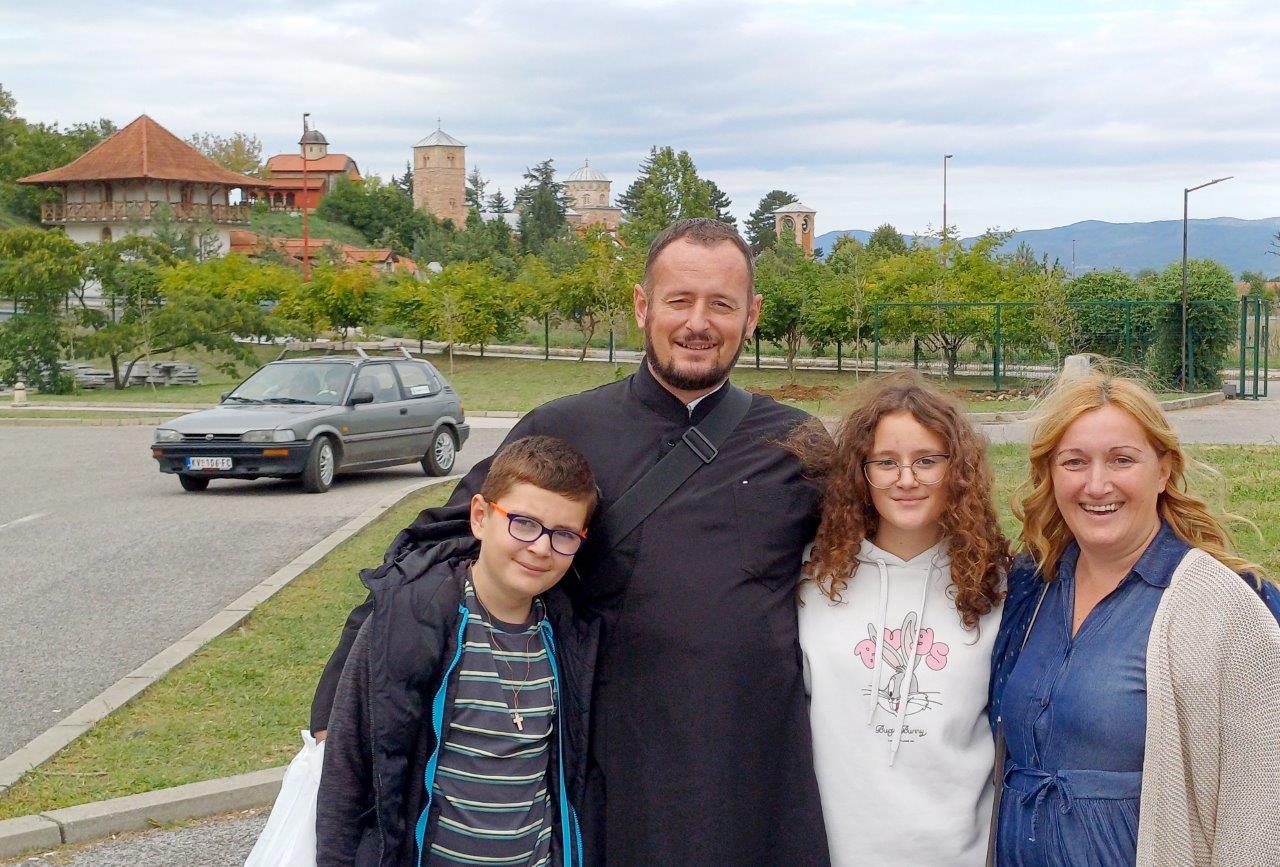 Zatim smo posjetili manastir Žiču kraj Kraljeva koji više nema svoju poznatu bordo boju jer se restaurira. Taj manastir je zadužbina prvog srpskog kralja Stefana Prvovjenčanog u kojem su krunjeni svi kraljevi iz dinastije Nemanjića i ustoličavani episkopi kojima je od 2019., to bilo prvo sjedište autokefalne srpske arhiepiskopije. U prostoru Žiče ponovo sam susreo mladog umjetnika drvorezbara Marka iz Čačka sa suprugom i kćerkicom Kalinom. Sve više mladih ljudi u Srbiji uči se moliti i tražiti lice Božje posjetom manastirima kroz poklone (metanije), križanja i cjelivanje ikona, sudjelovanja na liturgiji i pristupanju Svetoj tajni pričesti. Ponovo se traži kršćanski identitet i pojedinca i naroda jer je bezbožni komunistički režim kroz 50 godina duhovno opustošio srpski, i ostale narode na teritoriji bivše države. U knjižarama pri manastirima mogu se veoma povoljno kupiti knjige, ikone, nabožni predmeti, razne kreme, mirisna ulja, čajevi i dr. Pred manastirom Žiča sam fotografirao obitelj Gačeša, protinicu Slavicu, djecu Milicu i Vasilija i protu Dragana.
