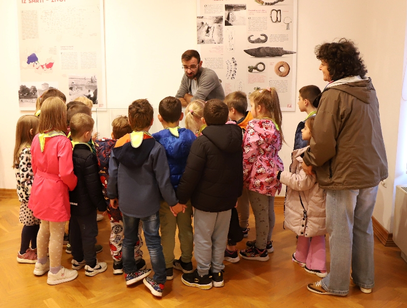 U sklopu radionice, mali istraživači su posjetili izložbu “Iz smrti – život”, koja prikazuje arheološke nalaze iz Nina, datirane u 8. i 9. stoljeće. Izložba sadrži predmete iz ranog srednjeg vijeka, uključujući posude s hranom, nakit, oružje, britve, češljeve i kresiva – sve to svjedoči o životu i običajima tadašnjih Hrvata. Djeca su kroz izložbu naučila kako su ljudi pokapali svoje predmete, vjerujući da će im biti korisni u životu nakon smrti.