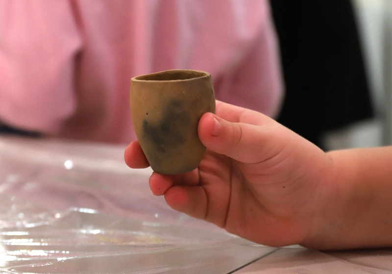 Nakon obilaska izložbe, mali arheolozi su u muzejskoj galeriji sudjelovali u praktičnom dijelu radionice, gdje su “iskapali” predmete ukopane u pijesak. Ova aktivnost je osmišljena kao rekonstrukcija stvarnog arheološkog terena, a pijesak različitih boja simbolizirao je stratigrafiju – slojeve zemlje kroz koje se arheolozi probijaju da bi otkrili predmete iz prošlosti. Djeca su nalazila replike predmeta poput keramike, kamena, nakita i drugih artefakata, a svaki je predmet pažljivo pohranjen u posebne vrećice.