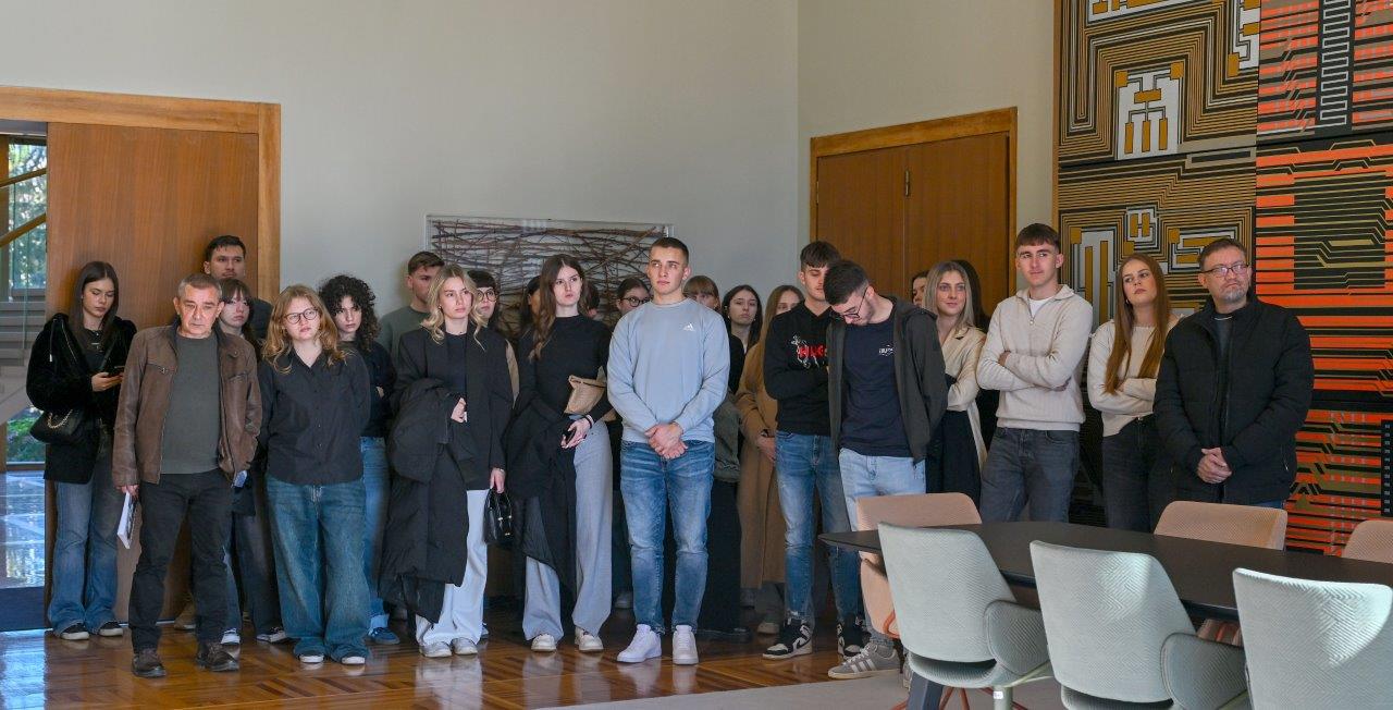 Kompleks, izgrađen između 1963. i 1965. godine prema projektu istaknutih arhitekata Ostrogovića i Richtera, predstavlja značajan primjer moderne arhitekture tog razdoblja i zaštićeno je kulturno je dobro. Učenici su unaprijed bili upoznati sa člancima Ustava koji se odnose na funkciju Predsjednika RH, a tijekom posjeta mogli su vidjeti gdje se primaju veleposlanici i drugi značajnici, dijele odlikovanja i priznanja. Od djelatnika Ureda Marina Knezovića čuli smo zanimljive priče o povijesti kompleksa i svakodnevnom životu u njemu. Ono što nismo očekivali je svojevrsna ekskluzivna umjetnička izložba (djela Murtića, Šuteja, Stančića, Meštrovića, Picelja, Knifera i drugih).