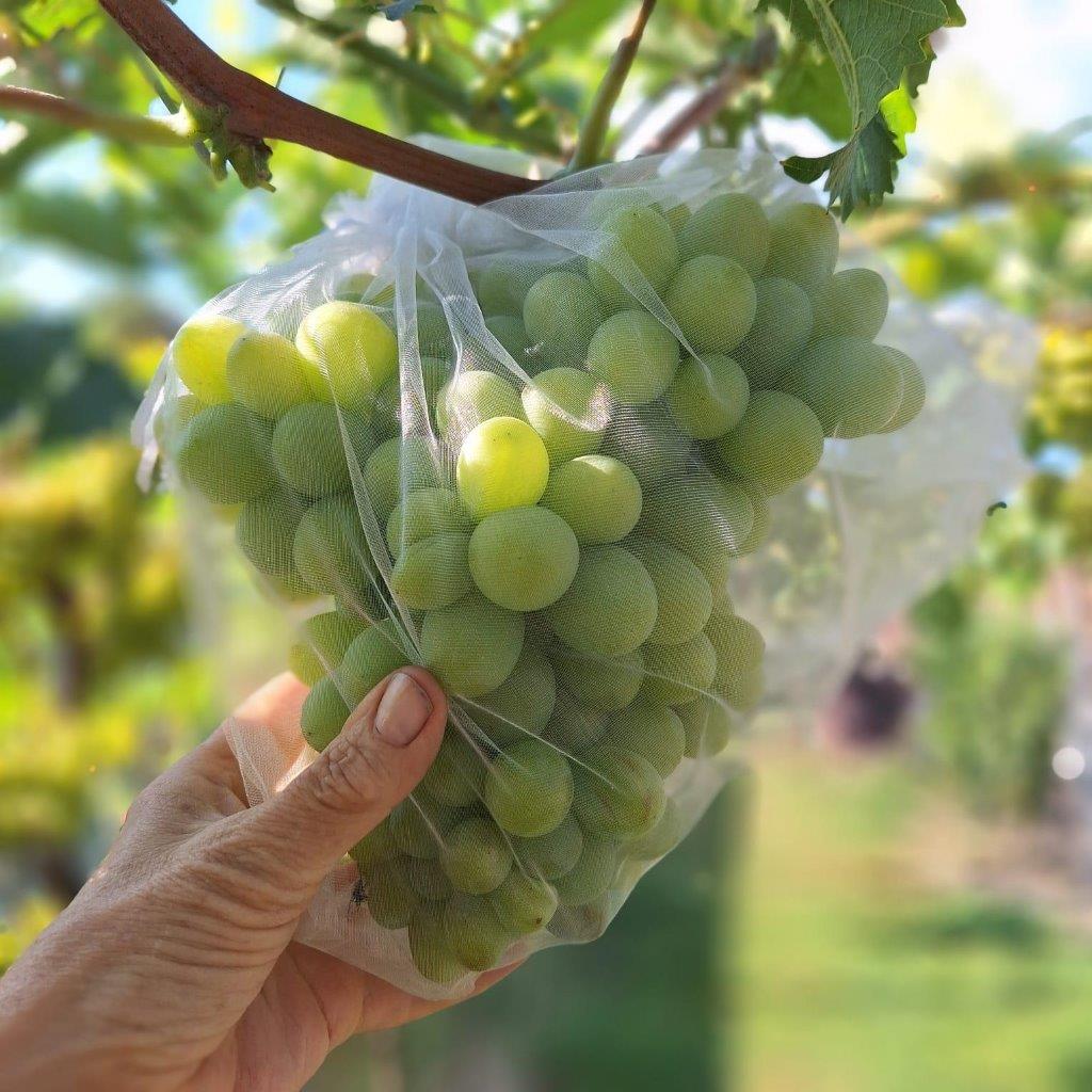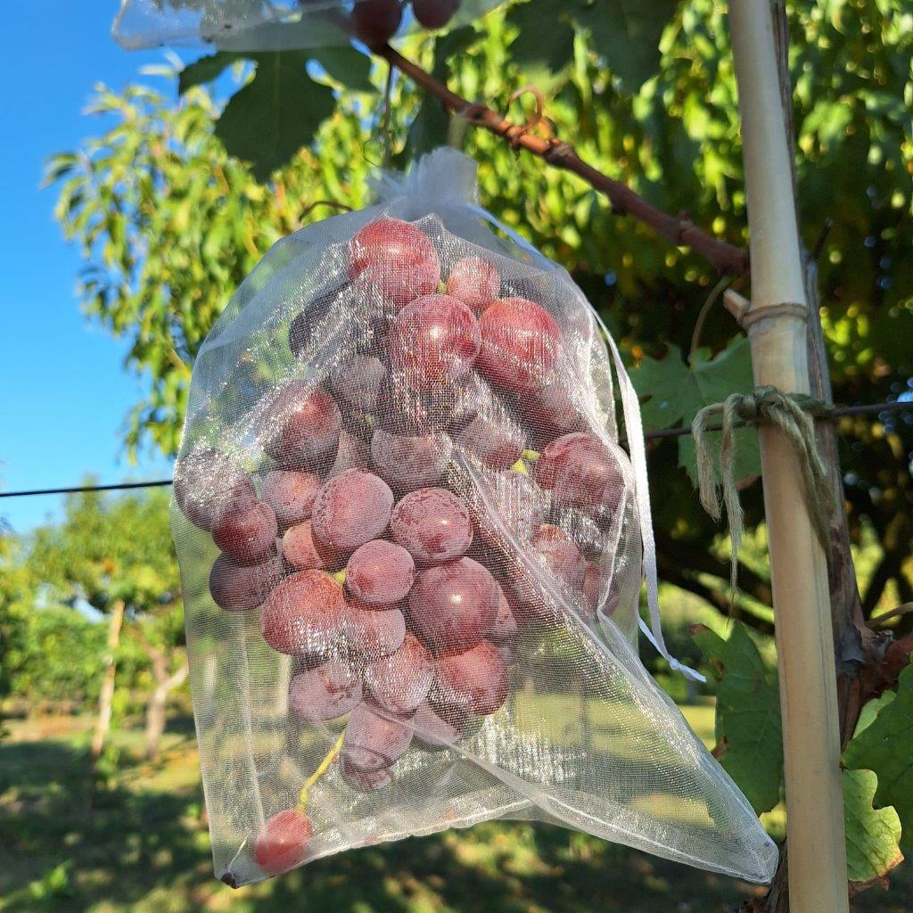 Kako bi grozdove zaštitila od osa i stršljena Josipa je preko interneta naručila preko 400 šupljikavih plastičnih „haljinica“ u koje je obukla svoje voćne ljubimce.
